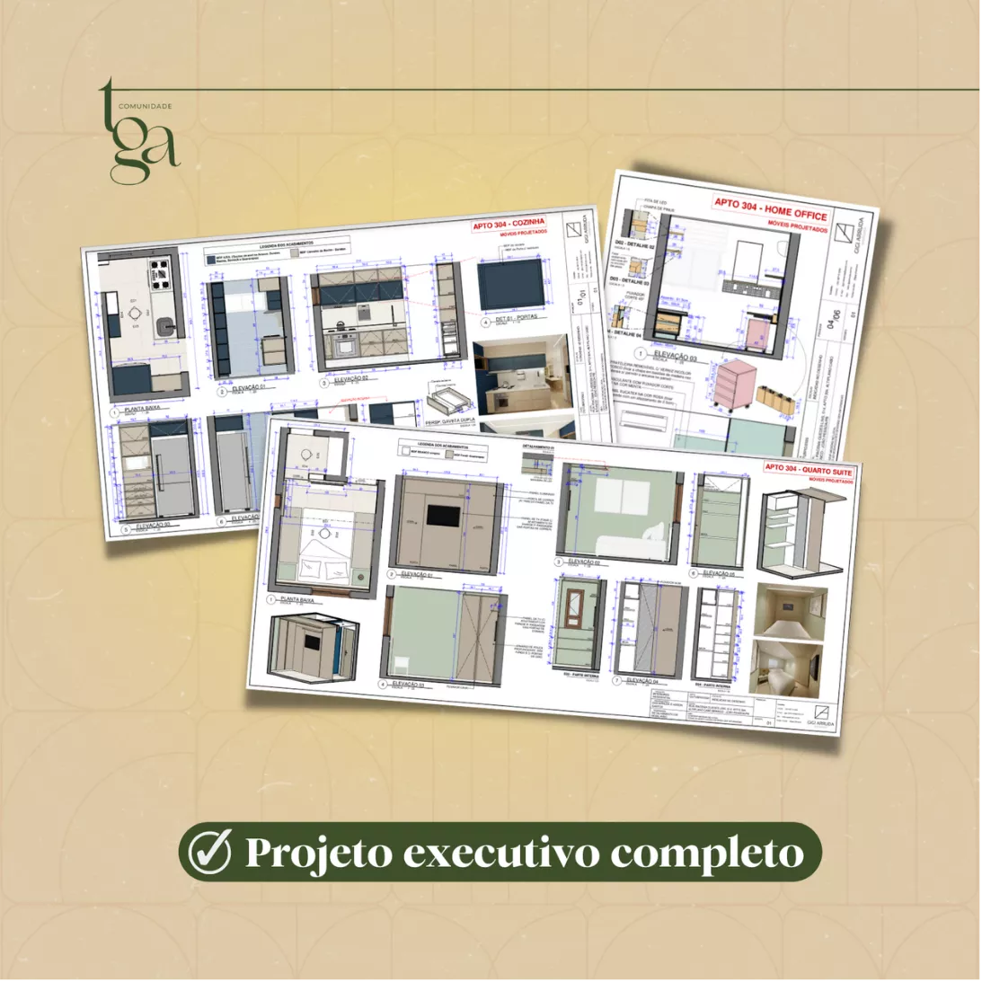 Não é apenas um treinamento de software, aqui você vai entender exatamente como funciona um projeto de marcenaria, detalhamento de bancadas, detalhamento de metais, paginação de paredes, nichos embutidos e muitos outros desenhos que fazem parte da entrega de um caderno executivo de interiores.