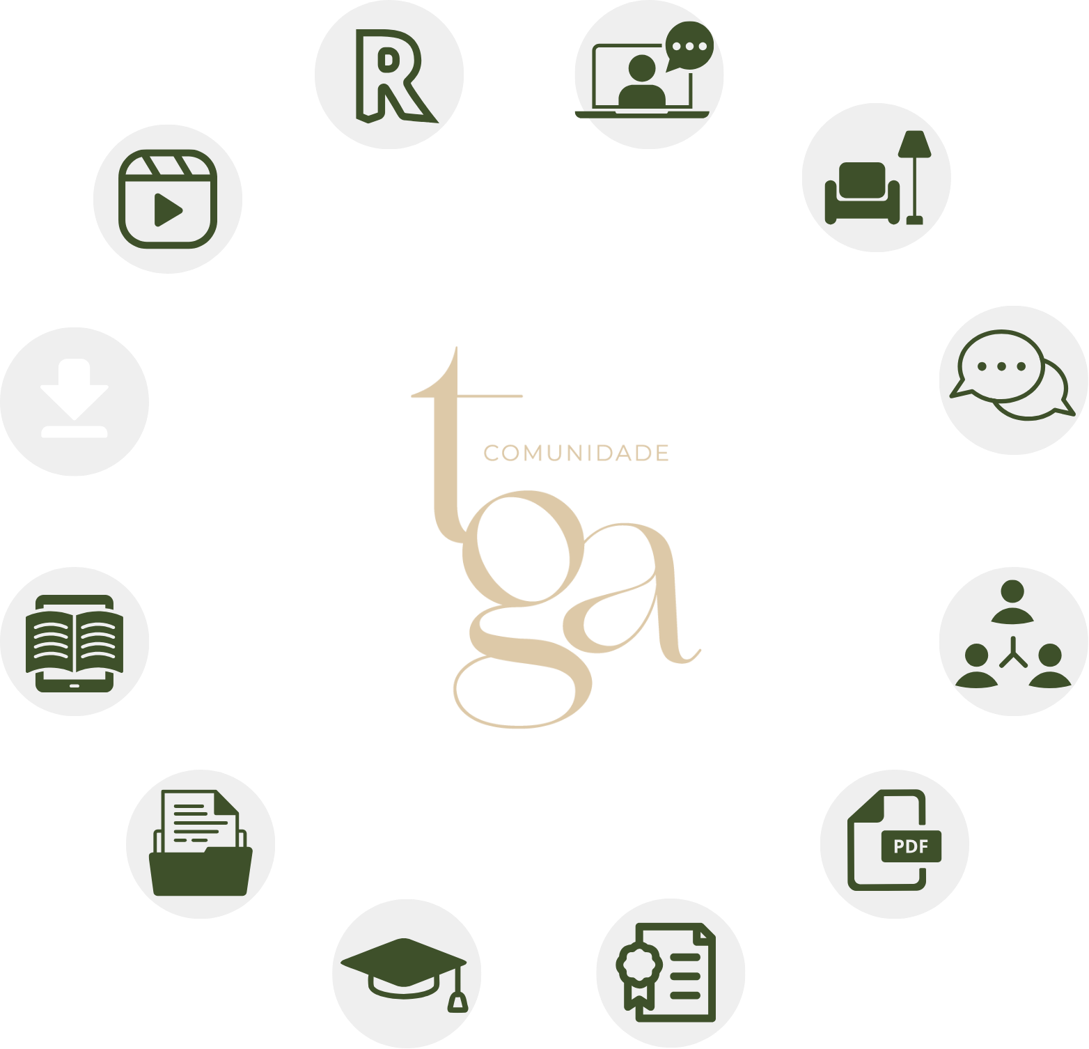 E além do acompanhamento, você tem acesso a uma estrutura completa de recursos exclusivos: Template completo (TGA), Treinamentos, Bibliotecas, E-books, Oportunidades de serviços e Atualizações.