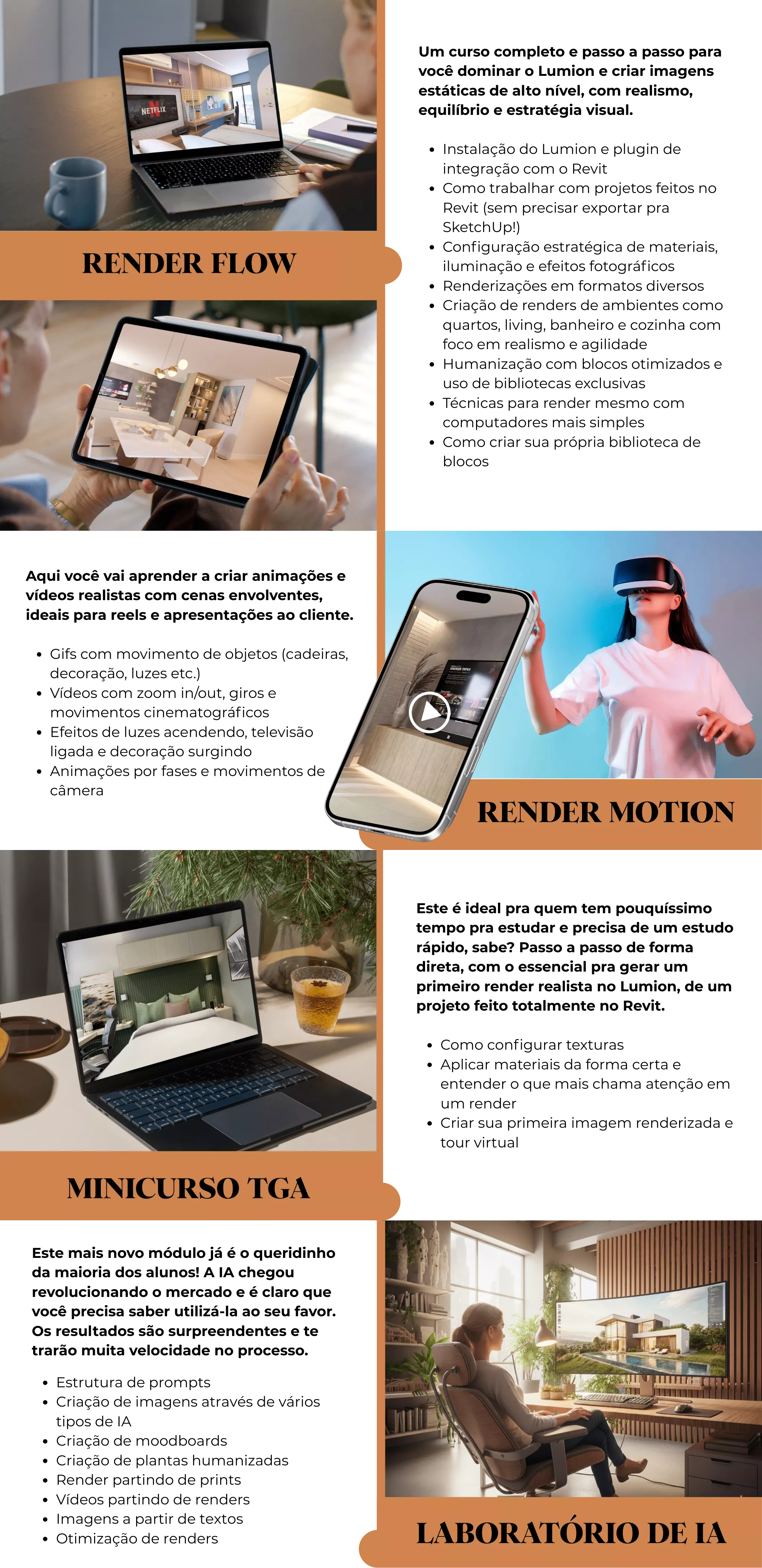 que se complementam para te ensinar como transformar seus projetos em apresentações realistas geradas por IA ou Lumion, mesmo que você nunca tenha usado nenhum deles antes: